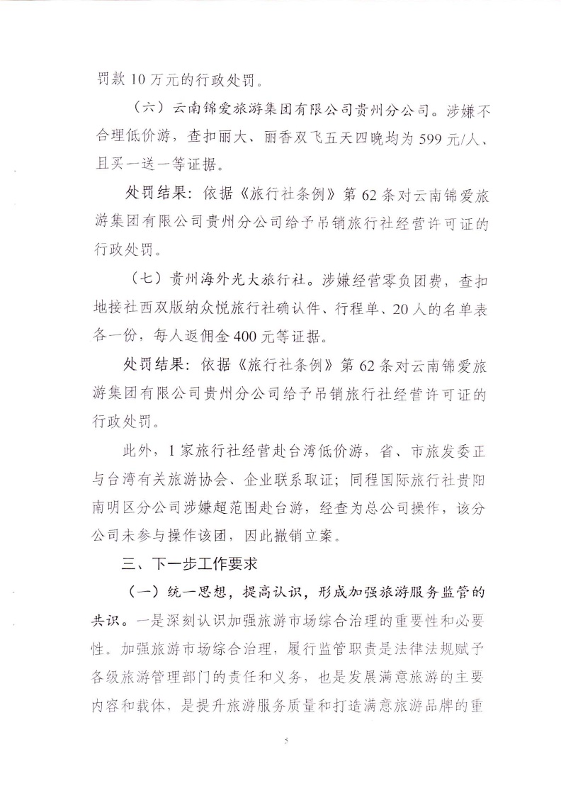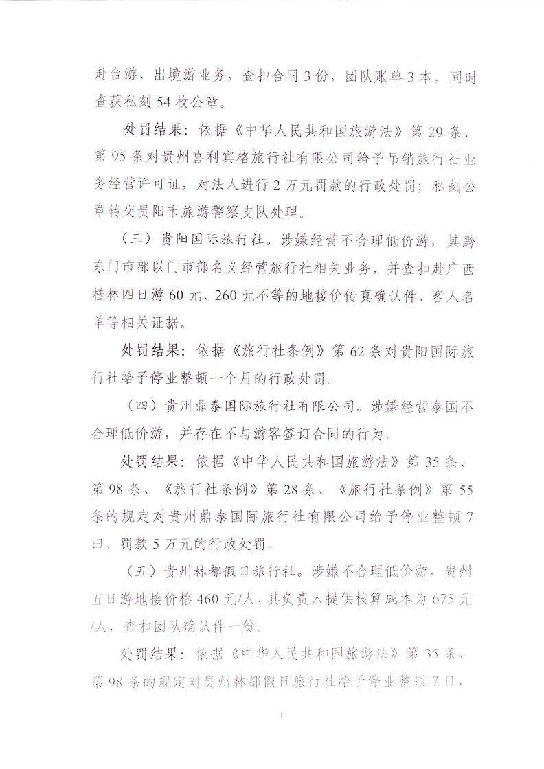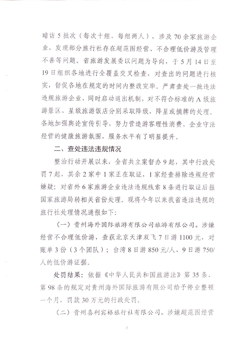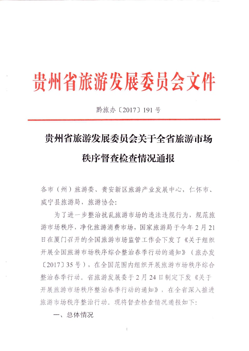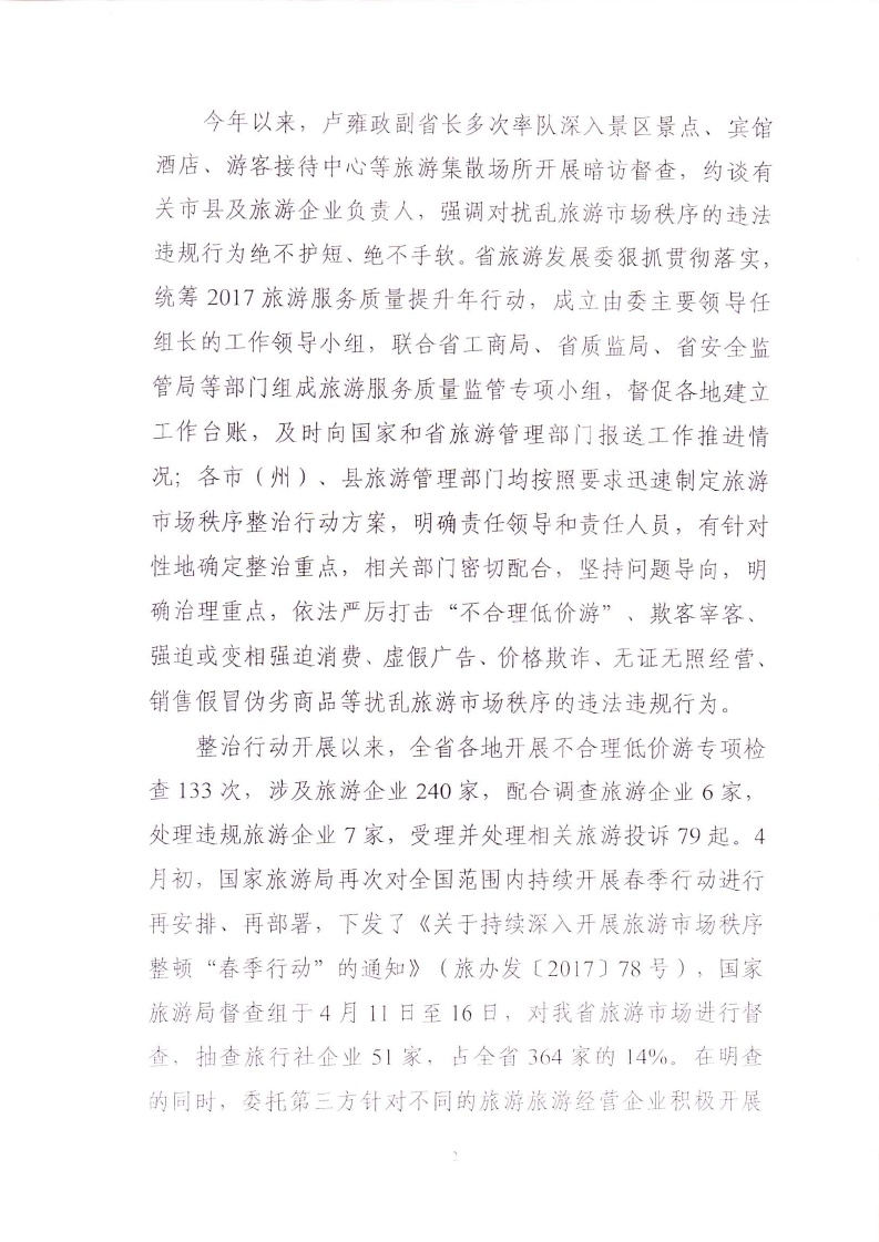 省旅发委关于全省旅游市场秩序督查检查情况通报
