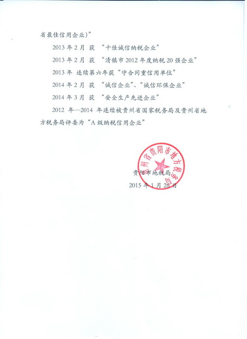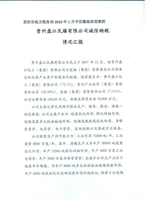 贵州盘江民爆有限公司诚信纳税情况汇报