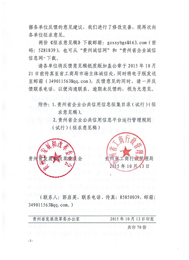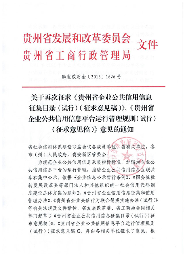 关于再次征求《企业公共信用信息征集目录》、《企业公共信用信息平台运行管理规则》意见的通知