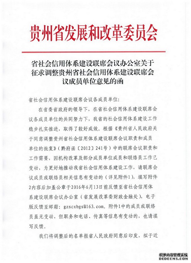 关于征求调整贵州省社会信用体系建设联席会议成员单位意见的函