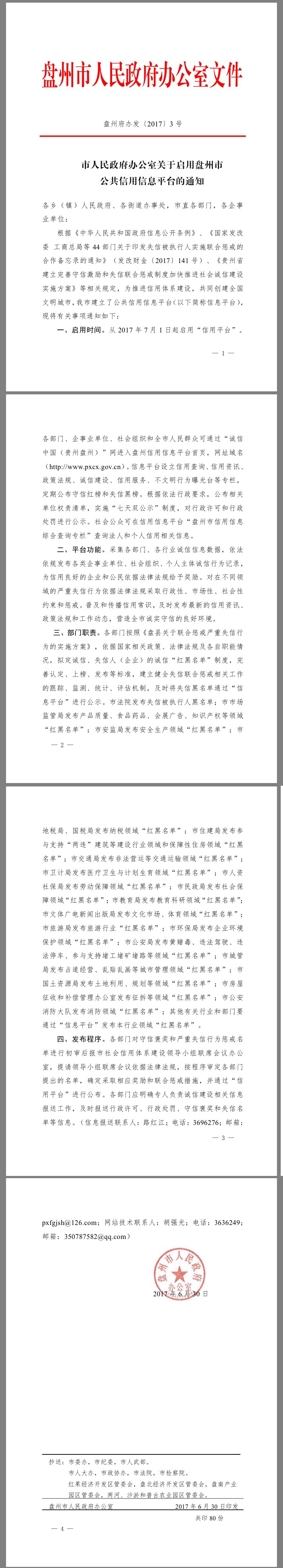 盘州市人民政府办公室关于启用盘州市公共信用信息平台的通知
