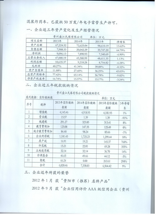贵州盘江民爆有限公司诚信纳税情况汇报