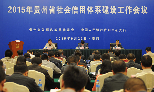 9月22日,2015年贵州省社会信用体系建设工作会议在贵阳召开,省人民政府相关领导出席会议并讲话,省发展改革委党组成员徐望北作了全省社会信用体系建设工作报告。会议由人民银行贵阳中心支行副行长郝曙光主持,省工商局、省国税局、省法制办等54个社会信用体系建设联席会议成员单位的成员和联络员,各市州人民政府、贵安新区管委会及清镇市、凯里市等9个省级县(市、区)信用建设创新示范试点的分管领导及相关负责人,省内外信用服务机构代表近200人参加了会议。新华网、中国新闻社贵州分社、贵州电视台、贵州日报、贵州都市报等50多家媒体对本次会议进行了报道。