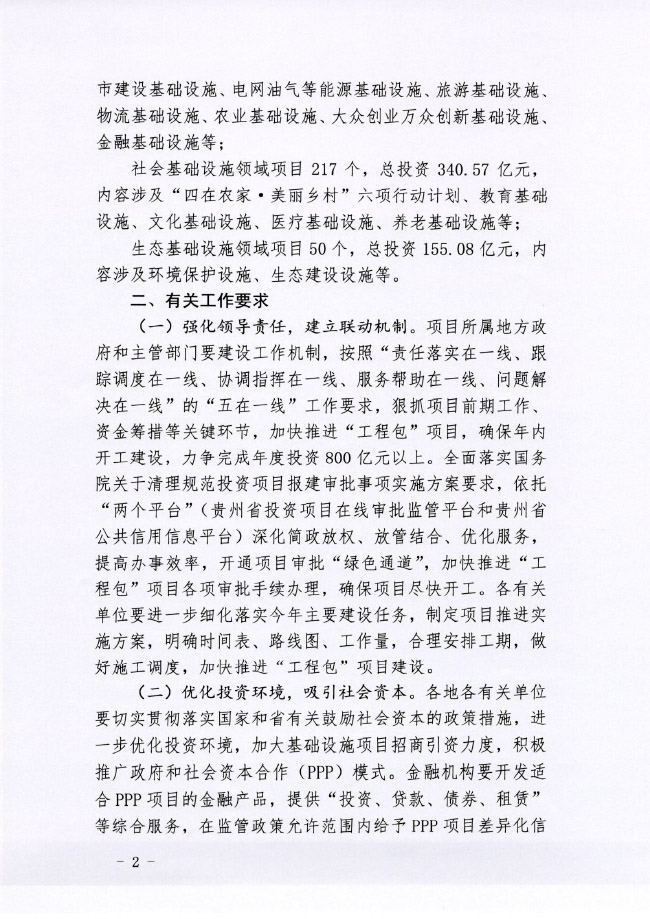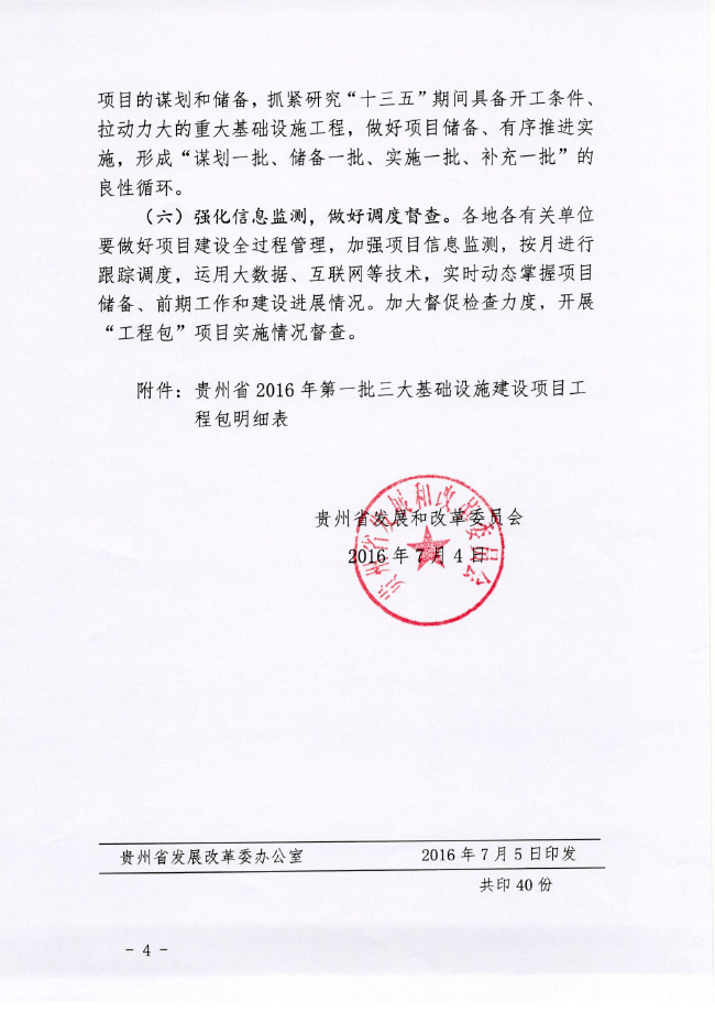贵州省发展改革委关于实施2016年第一批三大基础设施建设项目工程包的通知