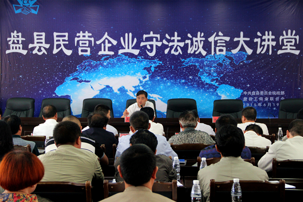 党的十八届四中全会提出了全面依法治国,为民营企业的公平公正发展提供了可靠的保障。为营造良好的民营企业发展环境,6月19日,盘县县委常委、县纪委书记吴胜卫应邀对盘县工商界各级人大代表、政协委员,县工商联执、常委中的民营企业家、异地商会、行业商会、基层商会组织有关负责人及部分企业法人开展“守法诚信”讲座。 以守法立身,做遵纪守法的模范。把守法做为企业健康发展的“底线”、“红线”、“高压线”和“生命线”,认真遵守各类与企业相关的法律法规,保证企业在各类生产、经营、销售等环节严格置于法律管理之下。任何违反法律法规的生产经营活动都必将受到法律的严惩。 以诚信为本,当诚实守信的表率。诚信是企业的“成事之基”、“成事之要”、“成事之本”、“成事之道”,其基本要求就是说老实话、办老实事、做老实人,诚信不仅是一种品行,更是一种责任;不仅是一种道义,更是一种准则;不仅是一种声誉,更是一种资源,是企业宝贵的无形资产。要强化对诚信的认识,营造诚信文化,形成讲诚信、说诚信、比诚信的良好风尚,塑良好的企业形象。 守法诚信,共筑美丽中国梦。守法诚信是核心价值观的需要,是适应新常态的需要,是实现中国梦的需要。进一步厘清权与法、礼与法、情与法的关系,坚定法治信仰,树立诚信理念,坚持以为人本,对社会和谐做出贡献,实现生态可持续,为实现中华民族伟大复兴的中国梦凝聚强大正能量。(盘县纪委 刘召辉)